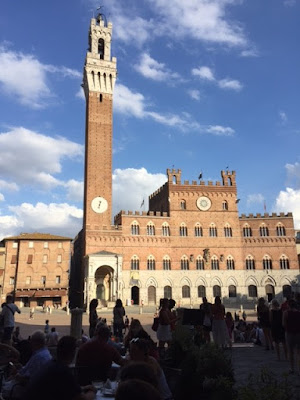 Siena is also a UNESCO heritage site. It has many charming places to explore. The most iconic place is a fan-shaped Piazza del Campo. This plaza creates a shade in the afternoon and people hang out walking, strolling, watching people, dining, drinking or simply lying down on brick grounds. Even dogs love to hang out here. AT this plaza, Siena's Gothic town hall called Palazzo Pubblico is located with its high tower overlooking the plaza and the city.