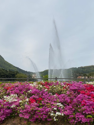 At the entrance to the lodging was a small park with a small lake and a water fountain. The scenery was cozy and beautiful.