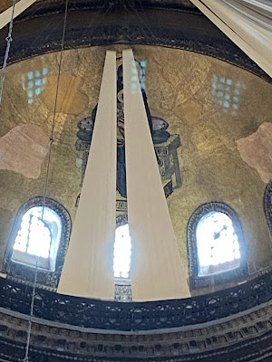 Hagia Sophia was the largest orthodox church in the Roman Empire. Under the Ottoman Empire, it was converted into a mosque in 1453 and they added minarates. In Turkish language, this Greek name is called St. Sophia Ayasofya. It was later converted to a museum in 1935, but was converted into a mosque again in 2020. What is the difference between a museum and a mosque? As a mosque, they cannot exhibit any portrait and statue because they are considered idols. Frescoes inside the building were covered by fabrics. But, there were frescoes outside the worship place. The inside was spectacularly beautiful.